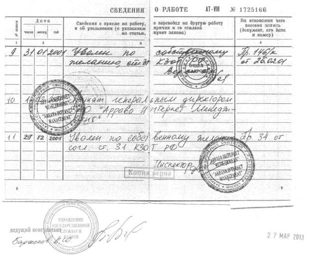 UPD: Вот скан трудовой, сделанный ДО всех этих "разоблачений":